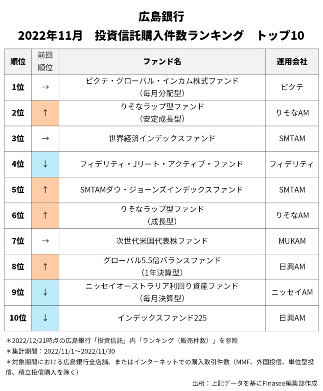 2022年11月、広島銀行で多くの資金を集めたのは以下のファンドだった。