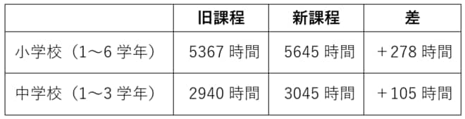 出所:文部科学省 学習指導要領「生きる力」 移行措置期間中の標準授業時数について