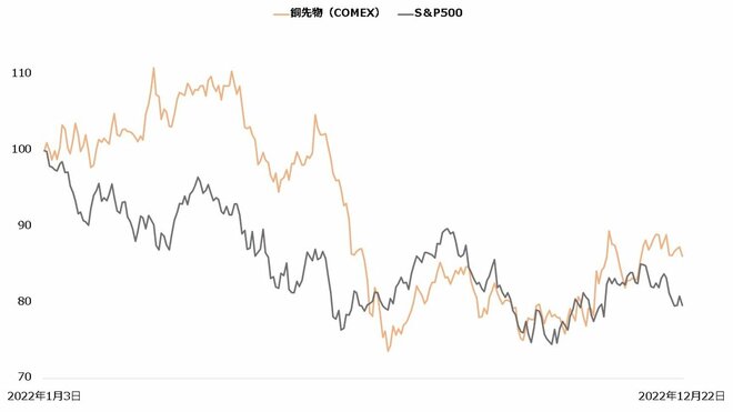 ただし、過信は禁物です。2022年、IMFは当面の経済見通しを3回も引き下げました。マイナス成長こそしていませんが、景気の停滞は明らかです。しかしこの間、ドクター・カッパーは機能しませんでした。株価が年初から下落する中、銅価格は6月ごろまで横ばいで推移し、後から株価に追いつくように下落しています。