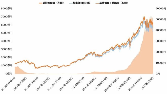 なお、アライアンス・バーンスタイン・米国成長株投信シリーズで最大の純資産総額を持つのはDコースですが、同銘柄は2022年に純資産総額が減少していました。その点を鑑み、2022年も純資産総額を増やしたBコースを取り上げています。