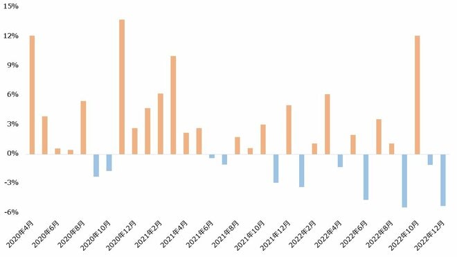 その後の運用も概ね好調で、マイナスの月もありますが、プラスとなった月の方が多く、設定来のリターンは120%を超えました(2022年末時点)。