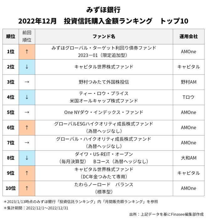 2022年12月、みずほ銀行で多くの資金を集めたのは以下のファンドだった。
