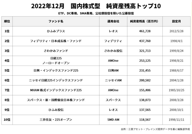 12月の純資産残高1位は「ひふみプラス」(4617.28億円)