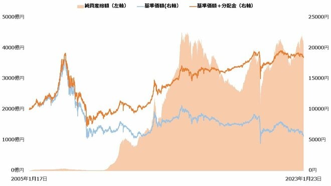 2022年11月末に、「J-REITリサーチ・オープン」シリーズ2本の純資産総額が5000億円を突破しました。うち「J―REIT・リサーチ・オープン(毎月決算型)」の純資産総額は、ETFを除けば単体でもJ-REIT型で最大です(2023年1月23日時点)。