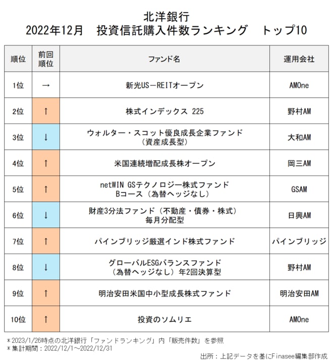 2022年12月、北洋銀行で多くの資金を集めたのは以下のファンドだった。