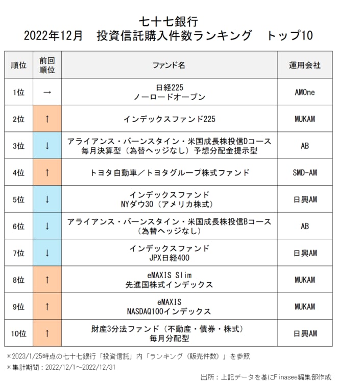 2022年12月、七十七銀行で多くの資金を集めたのは以下のファンドだった。