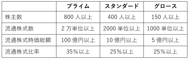 また「流通株式」を基準としたルールもあります。上場株式数から大株主などに固定化された株数を引いた株式のことで、これを満たさなければ上場を続けることができません。
