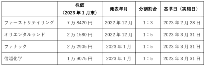 また2024年に始まる「新NISA」も株式分割を後押ししそうです。今年1月に株式分割を発表した信越化学工業は、理由に新NISAへの対応を挙げました。新NISAに設けられる「成長投資枠」では年240万円まで株式にも投資できるようになるとされており、最低投資額が枠内に収まるよう調整する狙いがあるとみられます。