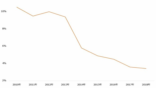 【インドのインフレ率(2010~2018年)】