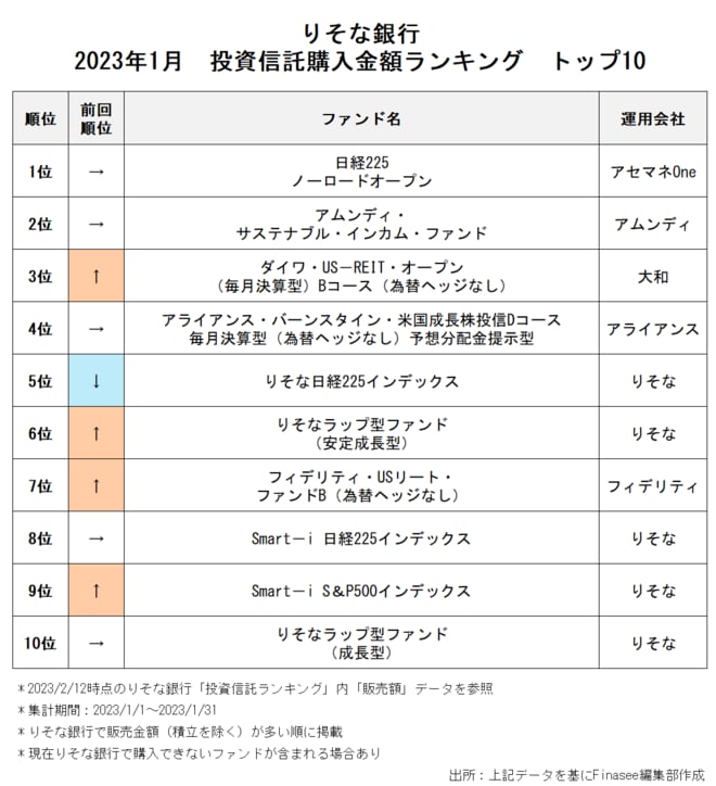 2023年1月、りそな銀行で多くの資金を集めたのは以下のファンドだった。