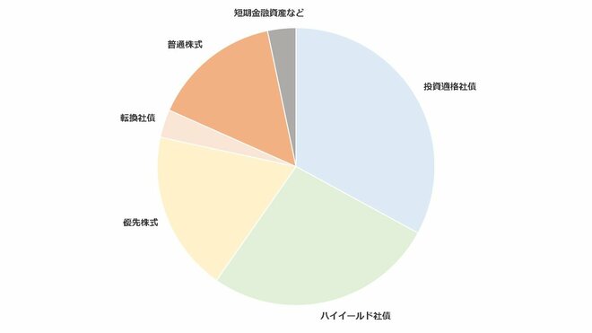 同ファンドの「フレキシブル・インカム戦略」は、企業が発行するさまざまな有価証券に投資する運用方法です。投資適格社債だけでなく、信用リスクの見返りとして高い利回りが期待できるハイイールド社債のほか、優先株式や普通株式にも投資します。