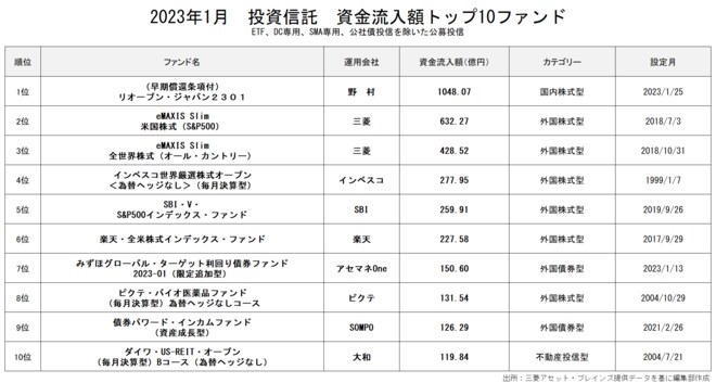 1月の資金流入額1位は「(早期償還条項付)リオープン・ジャパン2301」(1048.07億円)