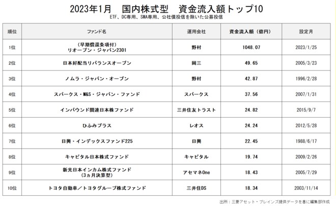 1月の資金流入額1位は「(早期償還条項付)リオープン・ジャパン2301」(1048.07億円)