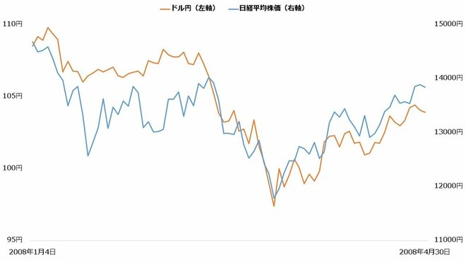 日銀総裁の空席はマーケットにも影響しました。ドル円と日経平均株価は日銀人事が混迷した2008年3月中旬にかけて下落しています。