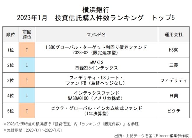2023年1月、横浜銀行で多くの資金を集めたのは以下のファンドだった。