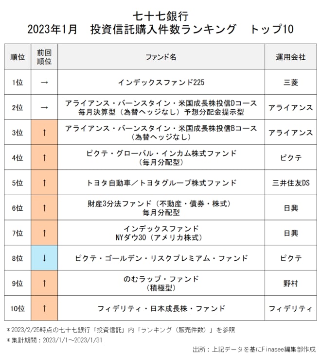 2023年1月、七十七銀行で多くの資金を集めたのは以下のファンドだった。
