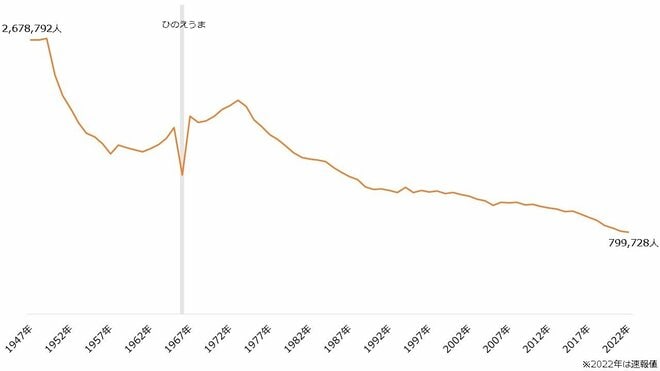 日本の出生数が2022年、初めて80万人を割り込みました。年々減少が問題視されており、少子化は日本が抱える重要な課題の1つです。日本の総人口も2050年代に1億人を下回ると予想されています。