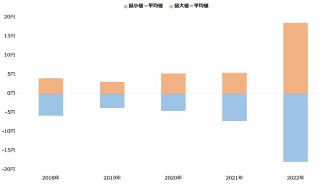 取引金額が急増した背景には値幅があるでしょう。代表的な通貨ペア「米ドル/日本円」は、ここ数年の高値と安値の差はおおむね10円前後でした。しかし2022年は35円以上も生じています。