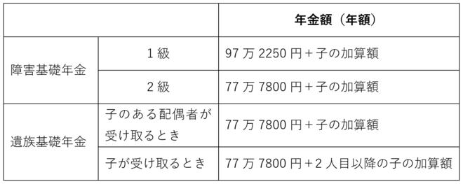 【障害基礎年金と遺族基礎年金の年金額(2022年度)】