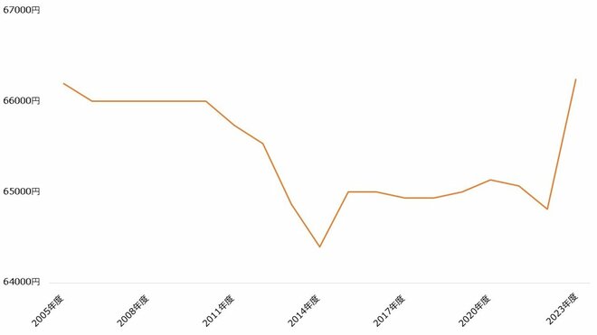 厚生労働省は2023年1月、2023年度の老齢基礎年金が引き上げられ、前年度比で67歳以下の人は+2.2%、68歳以上の人は+1.9%の上昇となったと発表しました。年金額の引き上げは3年ぶりで、月額は13年ぶりに6万6000円台を回復しています(満額の場合)。