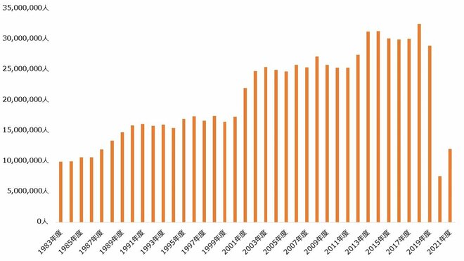 莫大な費用はかかったものの、完成したパークは多くの人を魅了し、現在もその人気に陰りはありません。2001年に「東京ディズニーシー」も開園され、年間の入園者数は2013年度に初めて3000万人を突破しました。累計では2021年度までに8億人を超える人が訪れています。