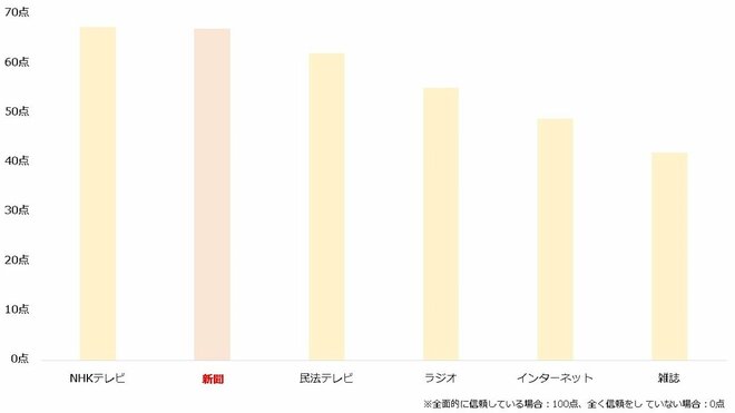 一般に、新聞は信頼されているメディアの1つです。新聞通信調査会が行った「メディアに関する全国世論調査結果(2022 年)」によれば、新聞に対する信頼度はNHKテレビに次いで2番目に大きくなりました。私たちにとって、新聞は正しい情報に触れるために欠かせない存在といえそうです。