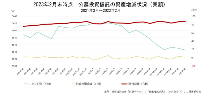 公募株式投資信託(ETFを除く)は4029億円の資金流入で27カ月連続の資金流入超