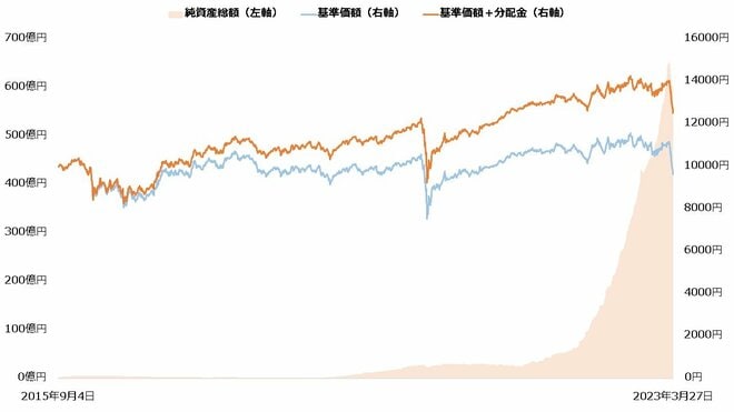 「パインブリッジ・キャピタル証券ファンド(為替ヘッジなし)」の純資産総額が急増しています。2021年末時点ではおよそ60億円でしたが、2023年2月には約636億円と10倍以上に成長しました。