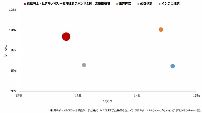 比較的低いリスクで大きなリターンを稼いだ運用戦略も、東京海上・世界モノポリー戦略株式ファンド(毎月決算型)の人気を支える要因の1つでしょう。同ファンドと同様の運用戦略は、主要な株価指数より低いリスクで同等かそれ以上のリターンを稼ぎました。