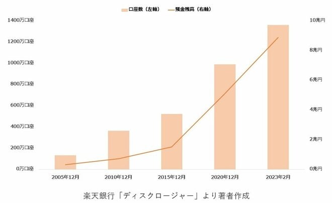 【楽天銀行の口座数および預金残高の推移】