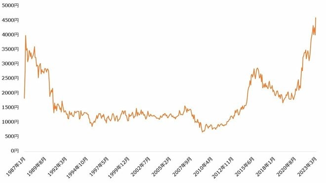 【味の素株価(月足終値 1987年1月~2023年3月)】