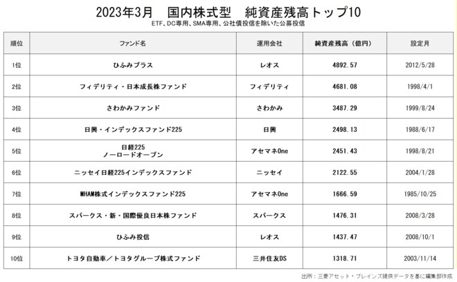 3月の純資産残高1位は「ひふみプラス」(4892.57億円)