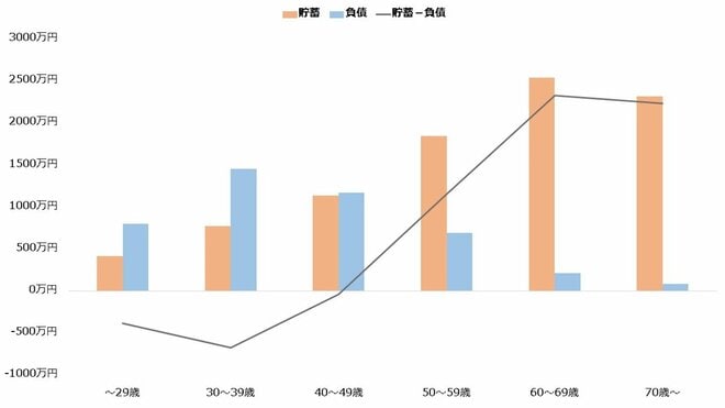 健康寿命の延びは経済にもよい影響がありそうです。貯蓄は年齢が進むほど増える傾向にあり、反対に負債は減る傾向にあります。家計に余裕がみられることから、高齢者が活動的になれば大きな資金が消費に向かうことに期待できるでしょう。
