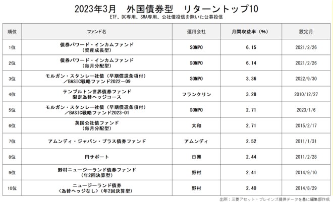 3月のリターン1位は「債券パワード・インカムファンド(資産成長型)」(6.15%)