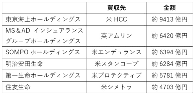【保険会社の主な海外M&A】