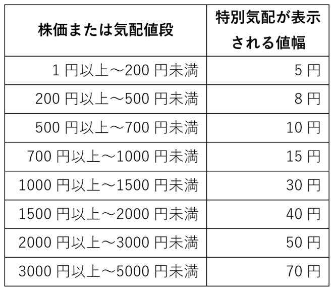 出所:日本取引所グループ 内国株の売買制度 特別気配の更新値幅