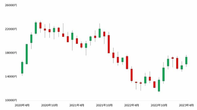 しかし近年は陰りが見え始めています。2023年3月期は円安などの影響から最終減益に転じ、翌期の予想では減収を見込みました。株価もそれを織り込んでいたのか、2021年後半から値下がり基調を強めています。