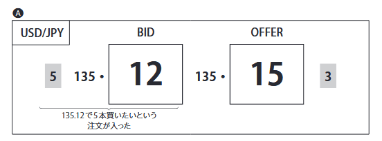 そうすると、売り手にしてみれば、より高いドルを売りたいわけですから、先ほどの135円10銭よりも、135円12銭のほうがベターなので、「それなら売ります」と、A銀行のビッドをヒットしてくるかもしれません。