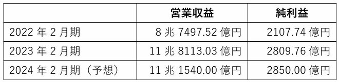「セブン&アイ・ホールディングス」が好調です。2023年2月期は売上高に相当する営業収益が小売業で初めて10兆円を突破し、純利益も過去最高を記録しました。株価も堅調で、2023年1月には上場来高値を約7年半ぶりに更新しています。