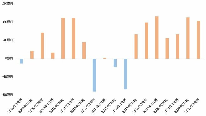 【合併後のタカラトミーの純利益(2006年3月期~2023年3月期)】