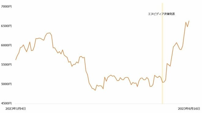 こうした環境で、「ソフトバンクグループ」が改めて注目されています。AIブームで好成績となったエヌビディアの決算が発表されると、ソフトバンクグループ株式には関連株の一角として買いが向かいました。同社は半導体設計大手の「アーム」を押さえていることもあり、AIブームで恩恵を受けるとの思惑が広がったとみられています。