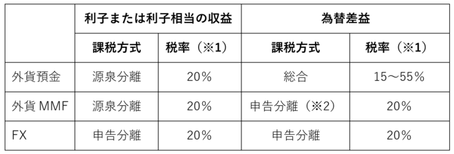 「分離課税」とは他の所得と分離して税金を計算する方法で、給与など他の所得がどれほど大きくても税率に影響はありません。上述した3商品における分離課税の税率は全て20%(2037年までは20.315%)です。分離課税は、原則として確定申告が必要となる「申告分離課税」と、原則として確定申告が不要な「源泉分離課税」に分かれます。