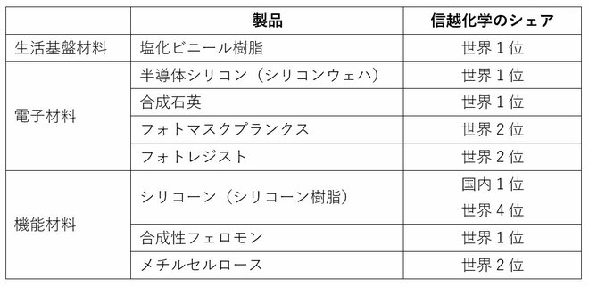 【信越化学工業が高いシェアを持つ主な製品】