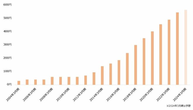 【年間配当金の推移(2004年3月期~2024年3月期)】
