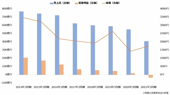 【当時の業績と株価(2014年3月期~2021年3月期)】