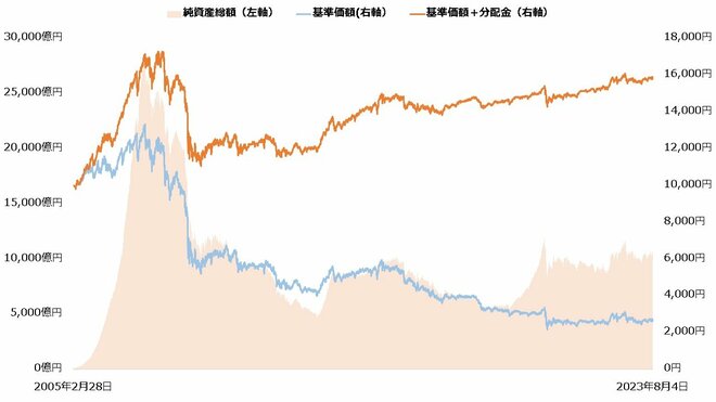 「ピクテ・グローバル・インカム株式ファンド(毎月分配型)」(以下:グロイン)に資金が再び向かっています。2007年に純資産総額が2.8兆円まで増加しますが、リーマンショックなどの影響から5000億円程度まで減少していました。しかし2019年に大きく資金を集め、現在は1兆円前後で推移しています。