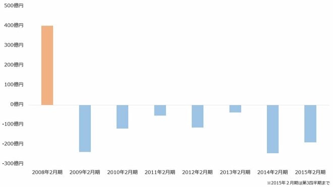 【ダイエーの純利益(2008年2月期~2015年2月期)】