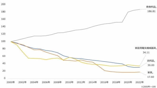 【スーパーの商品別販売額(2000年~2022年)】