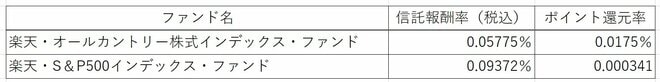 また、それぞれのファンドの信託報酬とポイント還元率は以下の通りである。