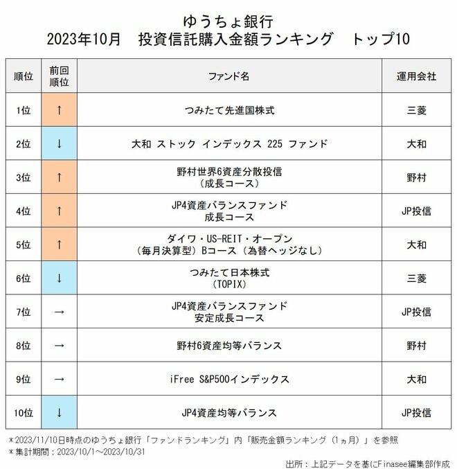 2023年10月、ゆうちょ銀行で多くの資金を集めたのは以下のファンドだった。